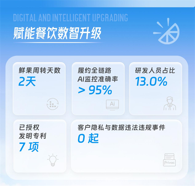 鲜沐科技始终将“数智化”作为企业发展的核心引擎,着力打造贯通物流、信息流与资金流的三端协同闭环,推动产业链协同效率持续提升。依托自有系统平台与AI技术应用,公司实现供应链关键节点的全链路可视化管理与动态调度,显著提升整体运行的稳定性与响应效率。报告显示,公司自主研发的AI智能履约系统已实现全链路覆盖,识别准确率超过95%,在保障食品安全与交付稳定性的同时,有效支撑全国范围内高频、规模化的履约需求。目前,鲜沐科技业务已覆盖全国200余个城市,SKU规模超过1万,为40万余家餐饮门店提供标准化供应链服务,持续夯实标准化餐饮行业的运行底座。