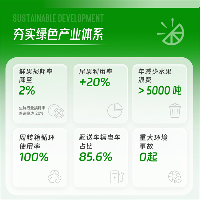 面对生鲜行业损耗率普遍高达20%的难题,鲜沐科技将绿色低碳理念贯穿于供应链规划、运营与管理全过程,实现了显著的效率提升与资源节约。通过精细化管理与数字化手段,持续优化资源配置方式,推动供应链运行效率与环境绩效的协同提升。