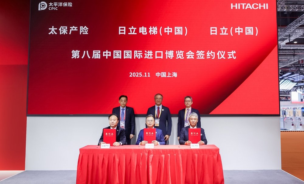 2025年11月5日,在第八届中国国际进口博览会(以下简称“进博会”)上,日立(中国)有限公司(以下简称“日立(中国)”)、日立电梯(中国)有限公司(以下简称“日立电梯(中国)”)与中国太平洋财产保险股份有限公司(以下简称“太保产险”)共同签署了关于探索创新的电梯“保险+服务”模式的战略合作协议书。中国太保集团副总裁、太保产险董事长俞斌,太保产险副总经理李超,日立集团中国总代表明田笃弥,日立(中国)副总经理前川广树,日立电梯(上海)总经理陈炜桥,日立电梯(中国)营业部长何粲宇等三方公司代表出席本次签约仪式,并就合作内容进行了深入交流。